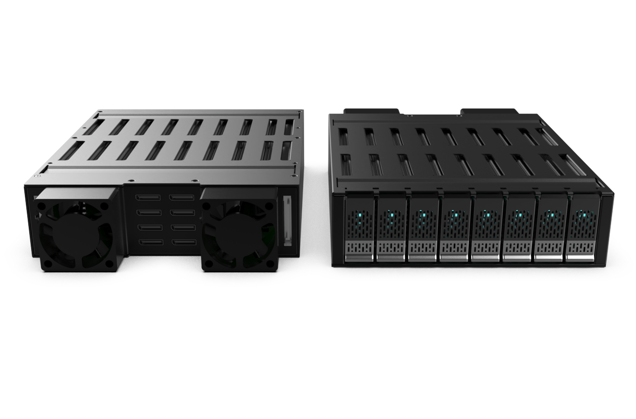.支援 8 個 OCuLink(SFF-8612)連接埠,對應每個 M.2 NVMe PCIe Gen4 SSD。