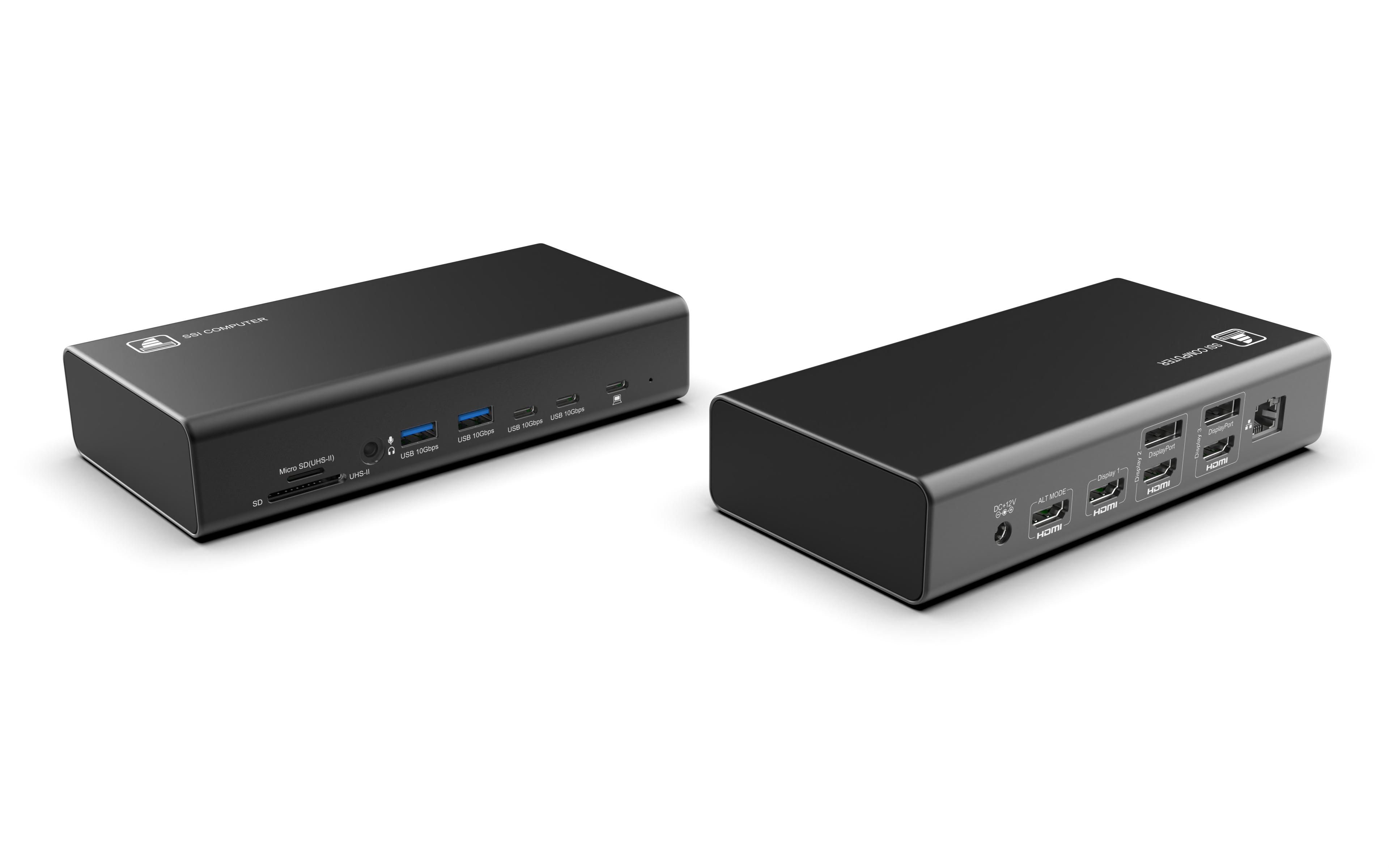 A.優質鋁製機身,散熱性能更佳。 B.尺寸:180.0 x 90.0 x 37.0 mm(不含腳墊)。 C.功能:LED 連接電源開關指示燈。 D.相容於 Thunderbolt 3/4、USB-C 和 USB type A 10Gbps 主機介面。相容於 MacBook(包括基於 Intel 和 M1/M2/M4 的 Mac)、Thunderbolt 3/4。 E.支援透過 HDMI2.0 同時輸出 4 個擴充顯示器(Windows 系統下最高可達 4K 3840x2160@60Hz),配備兩組 DP/HDMI Combo 接口,支援 2x DisplayPort + 2x HDMI 組合輸出,並支援 macOS(包括 M1、M2、M4 系列)。 G.兩個USB Type-A 10Gbps Hub支援菊花鏈連接,可連接兩組9937設備。輸出可透過HDMI 2.0擴展至最多12台顯示器,在Windows系統下解析度最高可達4K(3840x2160)@60Hz。 H.支援硬體視訊解碼器:H.265、H.264、M-JPEG、Real Video。 I.支援SD UHS-II讀卡器端口,超高速高達312MB/s。 (向下相容舊版SD卡)。 J.支援micro-SD UHS-II讀卡器端口,超高速高達312MB/s。 (向下相容舊版micro-SD卡)。